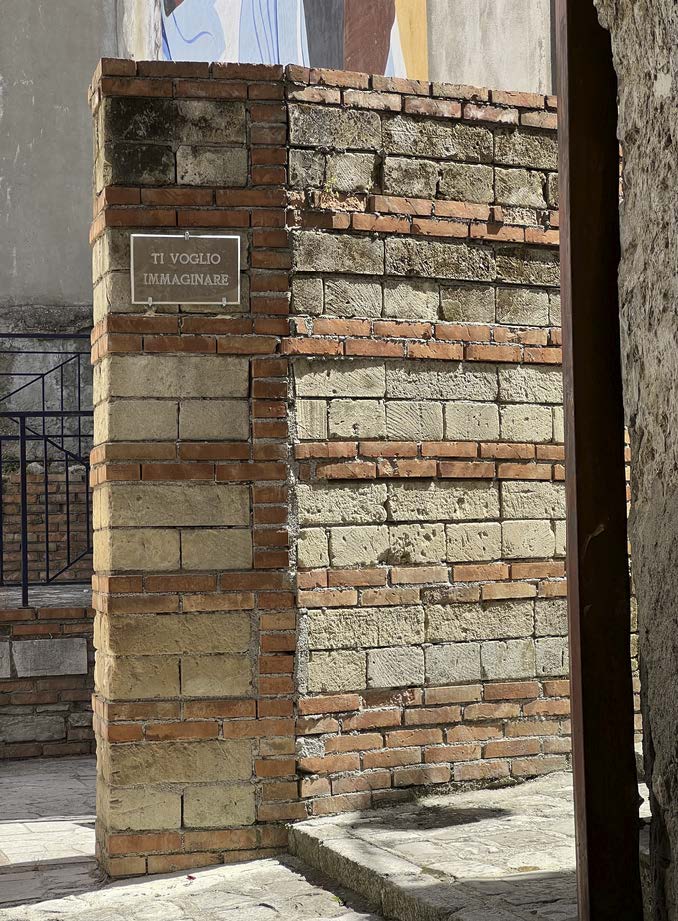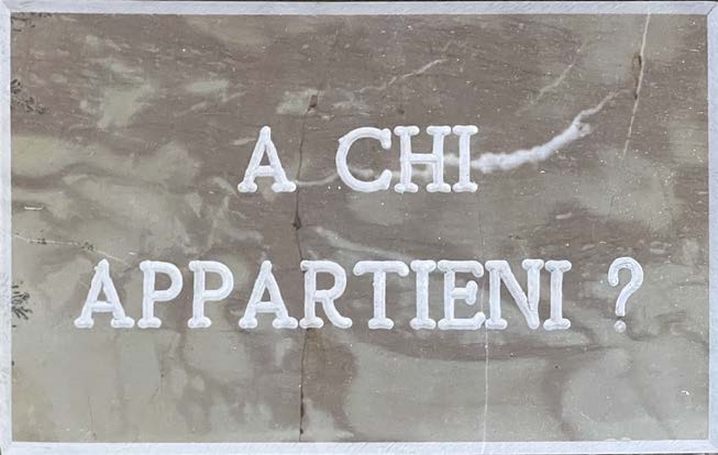 Realizzate a Sant’Andrea di Conza (AV) in occasione del progetto Disseminatio, le targhe in arsicola rossa (installazione permanente) realizzate dall’artista per il contesto urbano, sono frasi raccolte da un continuo dialogo con gli abitanti del luogo.