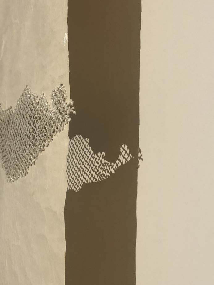 Nato nel 2018 come ri essione sullo strappo, sulla cicatrice, sulla violenza, sull’usura, sullo sgualcito, sulla piega e sulla fenditura deleuziana, Suture è un progetto che vuole ricomporre le parti di un passato consumato sotto la pressione del tempo (grande scultore, per dirla con Marguerite Yourcenar) e che vuole restituire dignità all’oggetto – dargli nuova bellezza – nonostante il deterioramento, il logoramento, la perdita di qualcosa che è anche, per l’artista, acquisizione di forza, di energia, di vitalità, di sanazione, di cura, di dignità. Alla ricerca della perfezione nell’imperfezione, Zapata propone con questo ciclo di opere un luminoso discorso sul wabi e sul sabi, sulla leggerezza di cose semplici e sulle screpolature, sulla povertà di materie che non solo hanno dignità d’esistere ma anche una intrinseca eleganza interna.